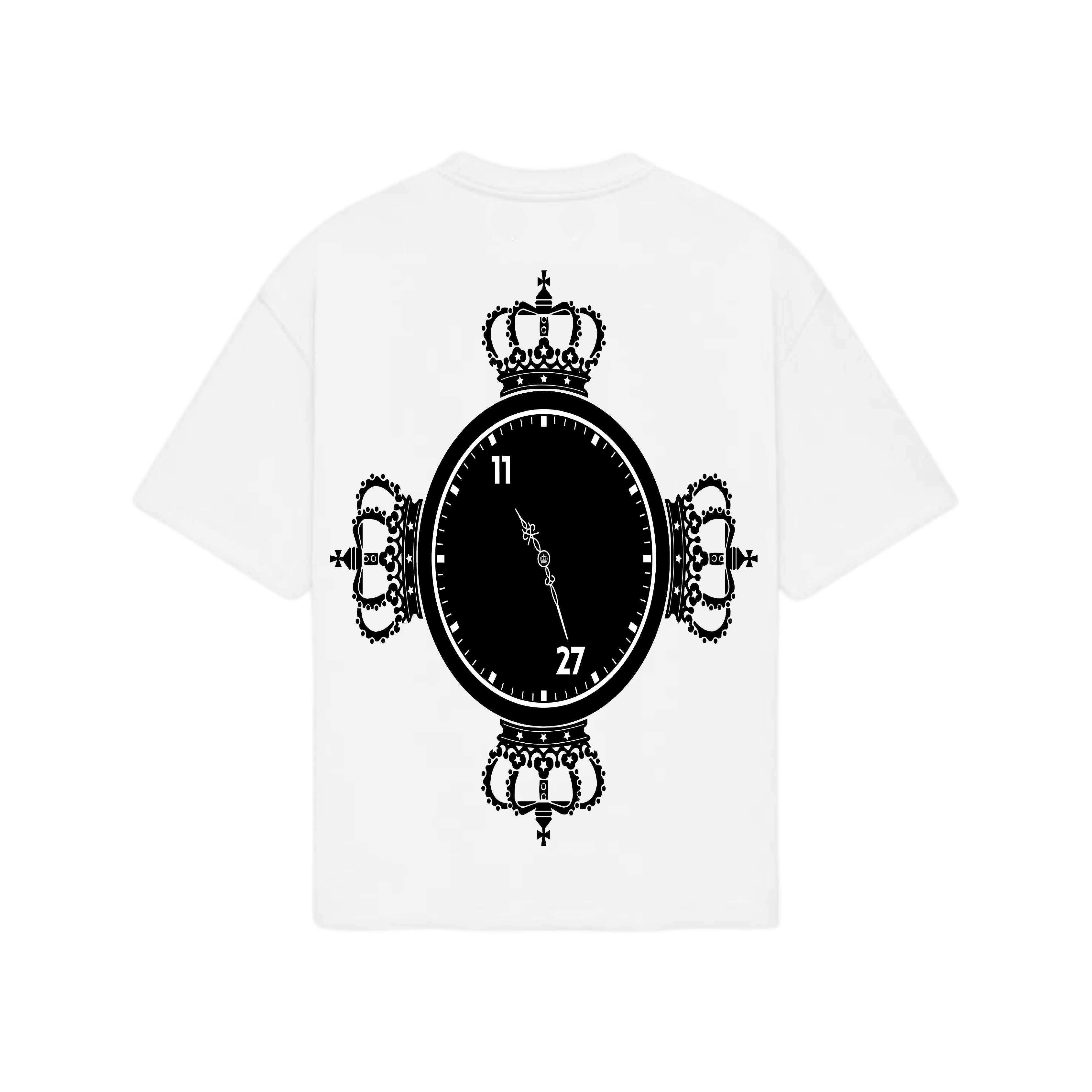 A masterpiece of understated luxury, the 11:27 Signature Time Tee Time-Piece embodies timeless sophistication. Expertly crafted and embroidered with the iconic Digital Time Logo and the distinguished Royalty Clock Logo, this piece is a true mark of prestige. Designed for those who appreciate excellence in detail, it offers both comfort and exclusivity in one refined silhouette.